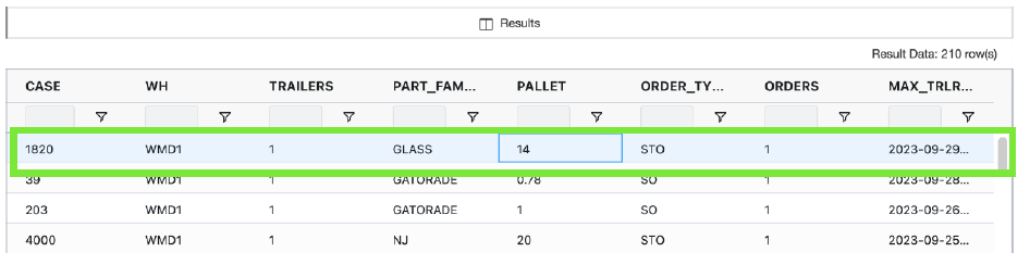Set up data for the new Card Widget in the same way you would for other widget types using Widget Builder, where you will select and filter a data source. If you leave the data as-is, the first value in the selected value column will display in the Card Widget. For this example, if you use Pallet as the value field, 14 will be the data point that displays in the card. The data field is selected when creating your Card in the Chart Wizard.