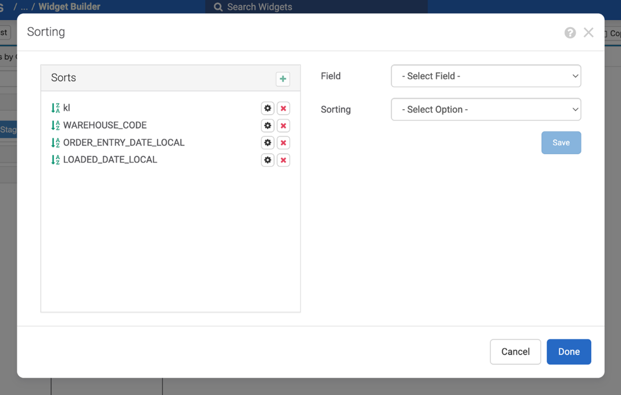 In the Widget Builder’s sorting stage, you can now re-arrange fields by dragging and dropping when you edit or create a widget. This lets you prioritize the most important sorts by putting them at the top of the list.