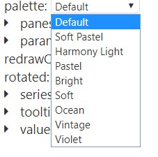 The properties are organized as an expandable and collapsible menu of options. Each property can have its own set of child properties that you can add to the menu and configure its settings. A property can apply to an entire set of elements on a chart (e.g., all axes, all labels, or all tooltips) or just to a particular element (e.g., a particular axis or a particular series). For those charts that can have more than one instance of a particular element (e.g., multiple series, panes, axes), each instance and its set of properties is denoted by a number, which start at ‘0’.