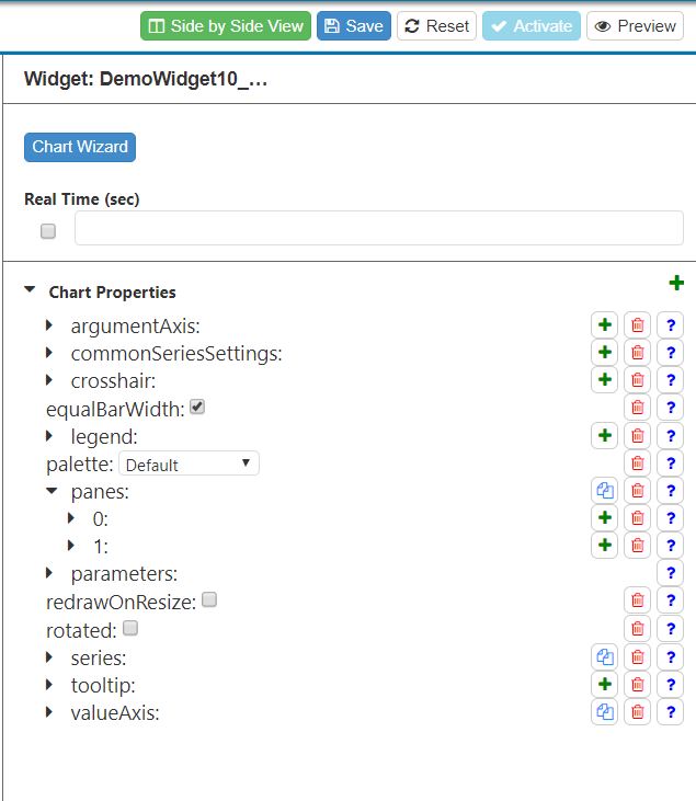 For points on how use the Chart Properties for advanced setup, see Advanced Setup - Widgets.