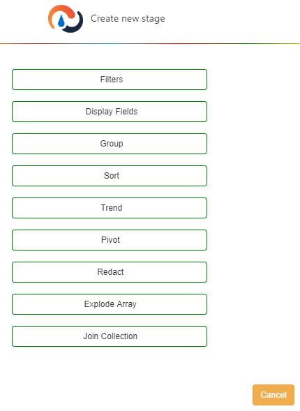 The stages of the Widget Builder screen make it easy for you to prepare data for widgets. A stage lets you select or manipulate data in a particular way. To prepare data for your widget, set up a sequence of stages. Each stage performs some operation on the data and then passes the resultant data set onto the next stage for further processing. The first two stages, Basic Info and Filter, are required because they’re where you set up the widget’s data source and selection criteria. When you click ‘New’ on the Widget Builder screen to start preparing data for widgets, you are prompted to choose between two modes:
