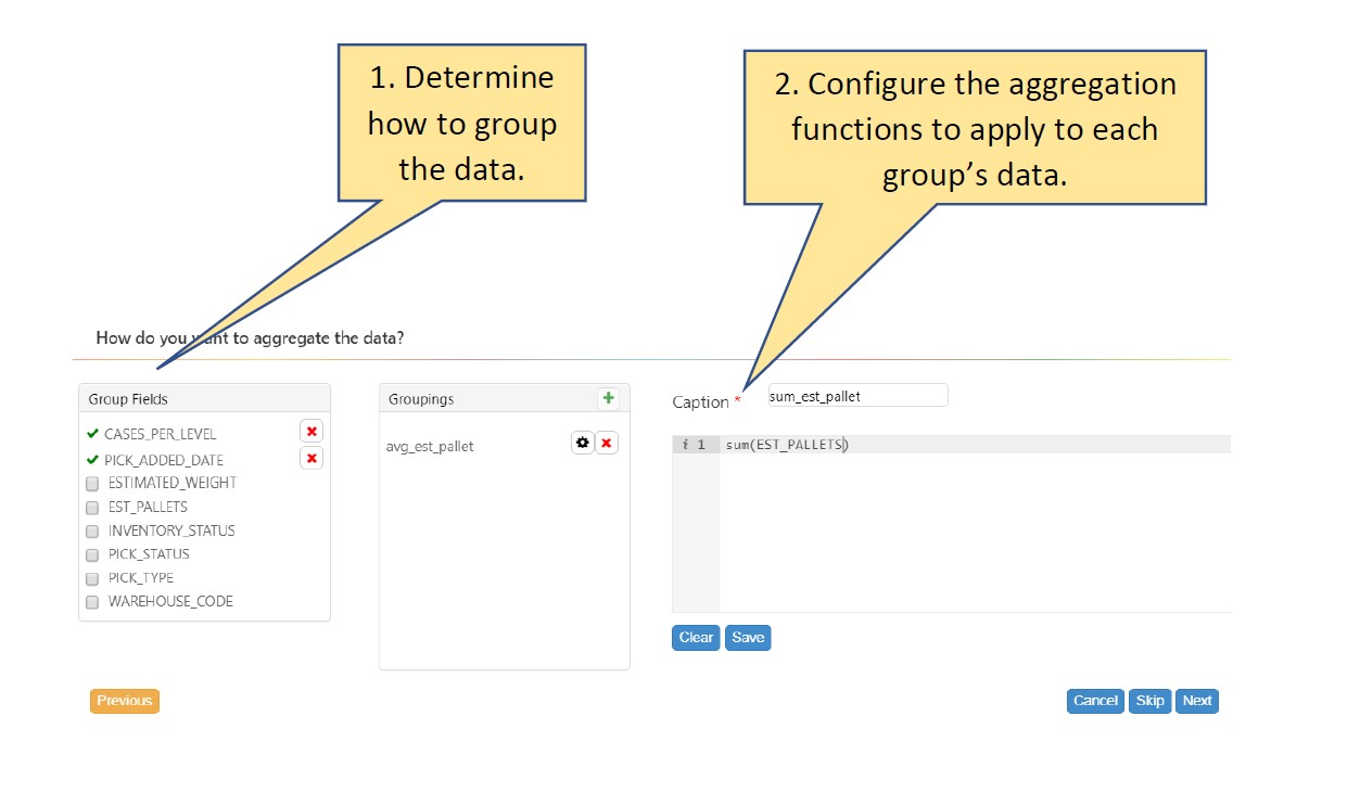 The wizard takes you stage-by-stage, from selecting data to grouping it to setting up pivot tables. After you’ve done these stages you’re invited to use the chart designer to apply a chart type (e.g., grid, pie chart, pie chart) to the prepared data and create a widget that you can publish to users.