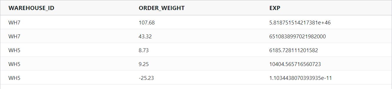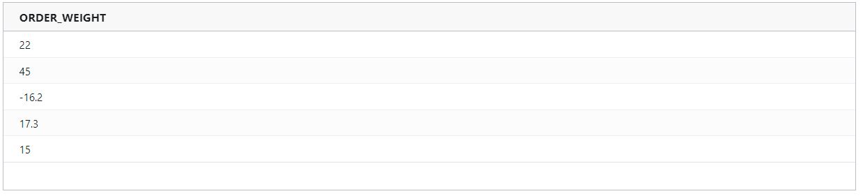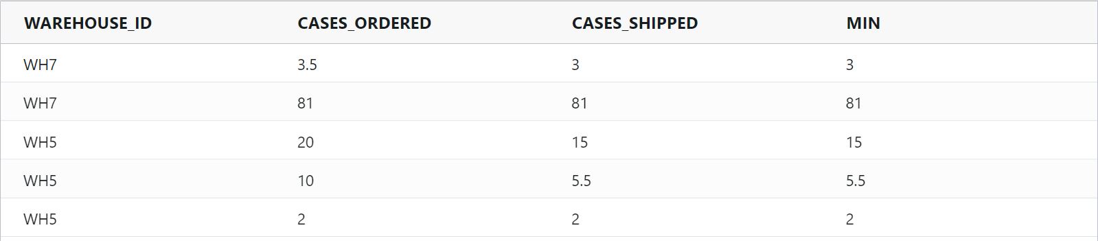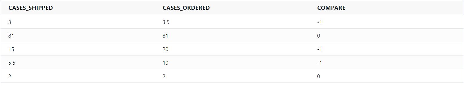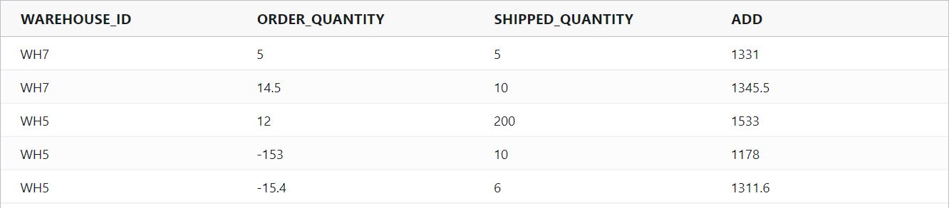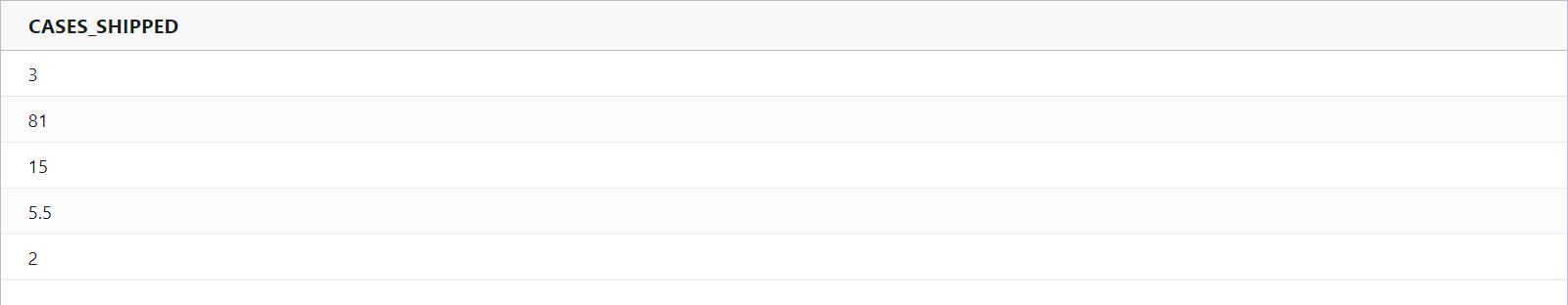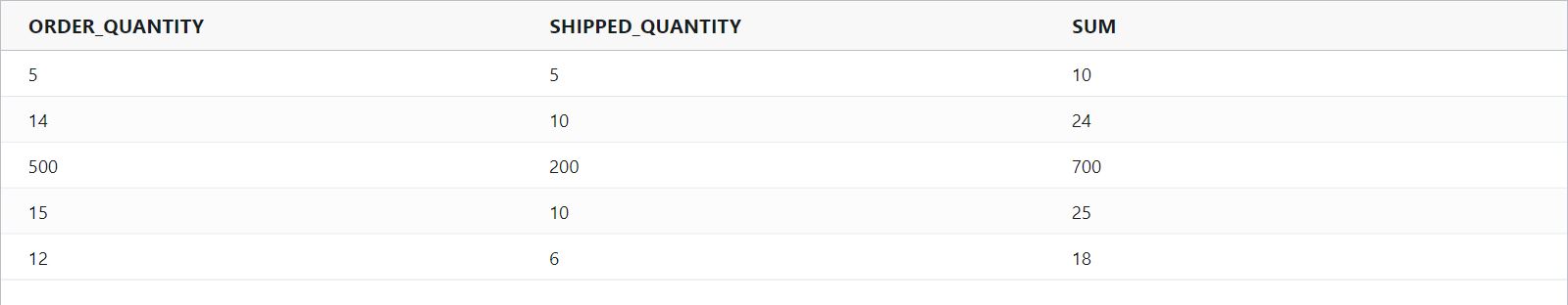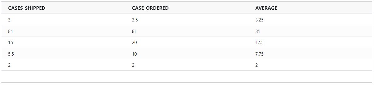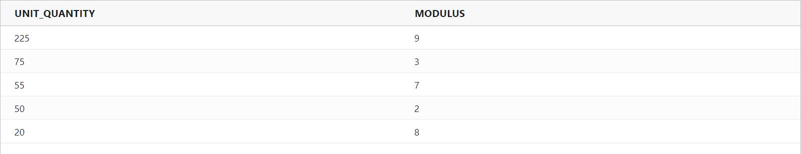 divide(ORDER_QUANTITY, SHIPPED_QUANTITY)Example Input