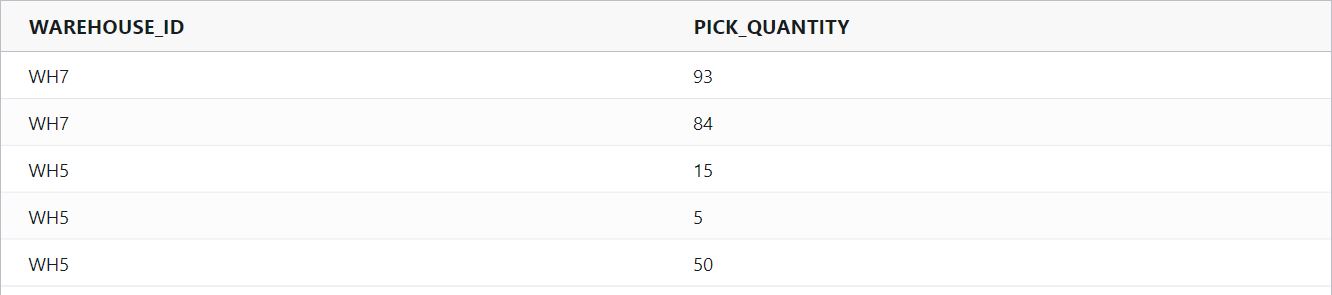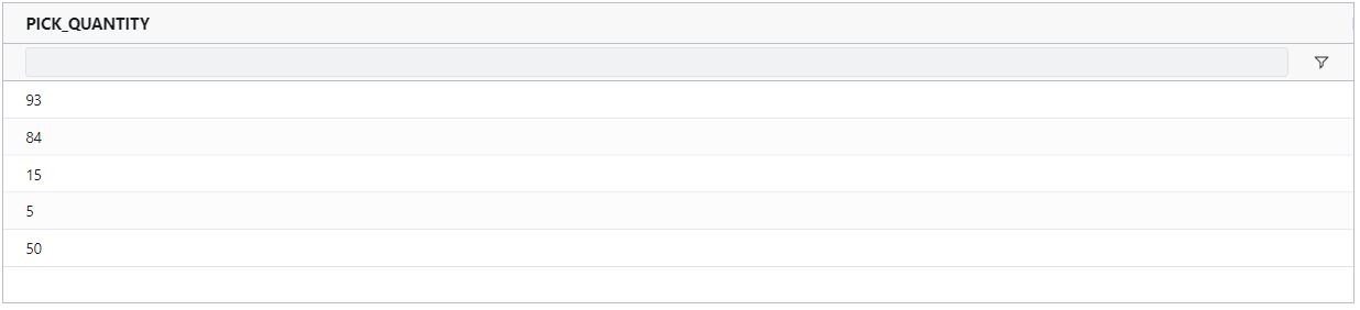 sums the records that have PICK_QUANTITY greater than 50 and less than 100. For each record that meets the condition, the function returns a value of 1, otherwise it returns a value of 0.