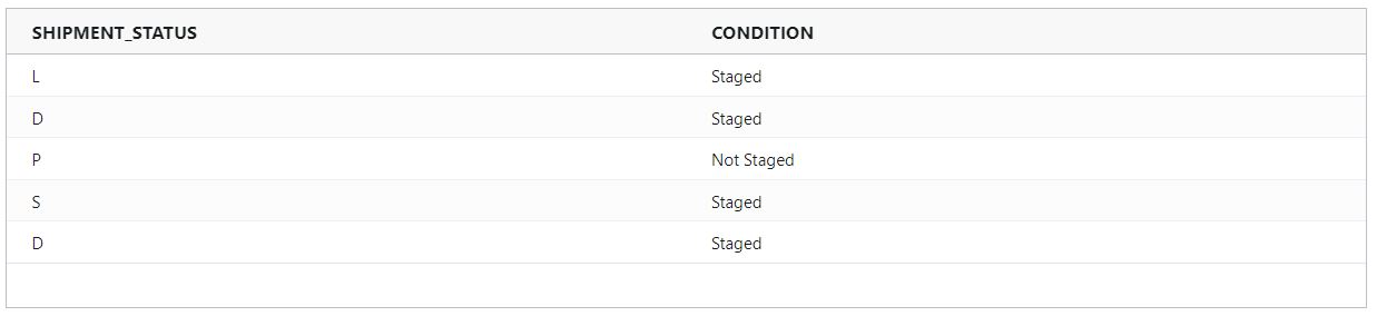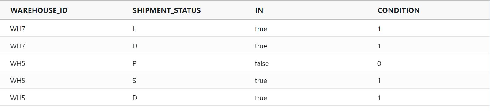 Either of the two possible return expressions can be a null value. In the example, the function returns a value of 1 if SHIPMENT_STATUS is D, L, or S; otherwise, it returns a value of 0. The expression then sums the records that meet the specified condition.