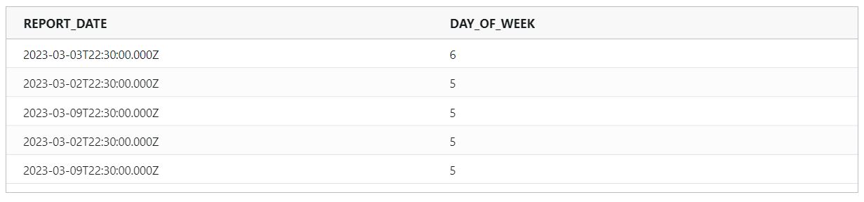 dayOfWeek : Returns the day of the week for a date as a number between 1 (Sunday) and 7 (Saturday).