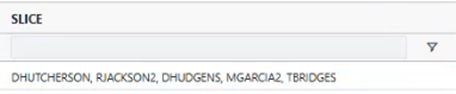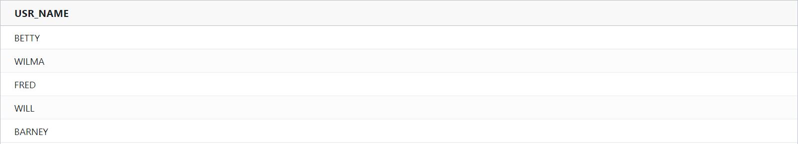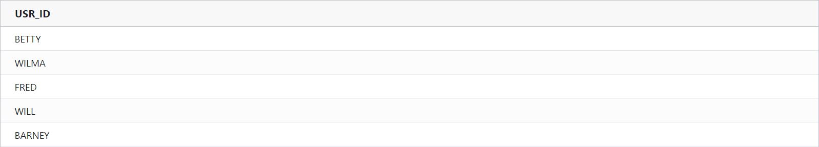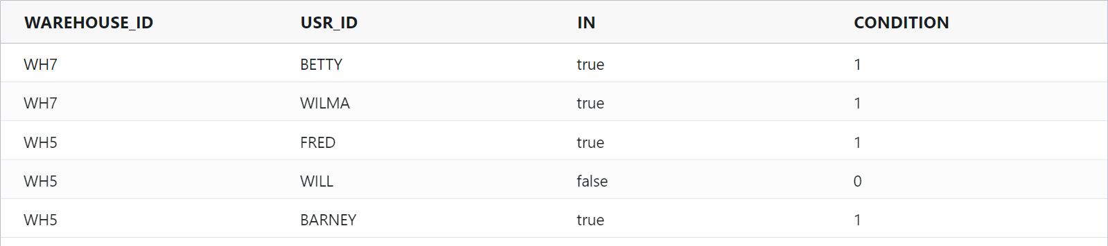 Each value should be enclosed in double quotes. Format: in (FIELD_VALUE_TO_TEST, [“ArrayElement1”,”ArrayElement2”]). To aggregate the true/false results, embed the in function inside the condition function and wrap the condition function inside the desired aggregation function. In the example, the condition function returns a value of 1 if USR_ID equals either “WILMA”, “BETTY”, “FRED”, or “BARNEY”; otherwise, it returns a value of 0. The expression then sums the records that meet the specified condition.