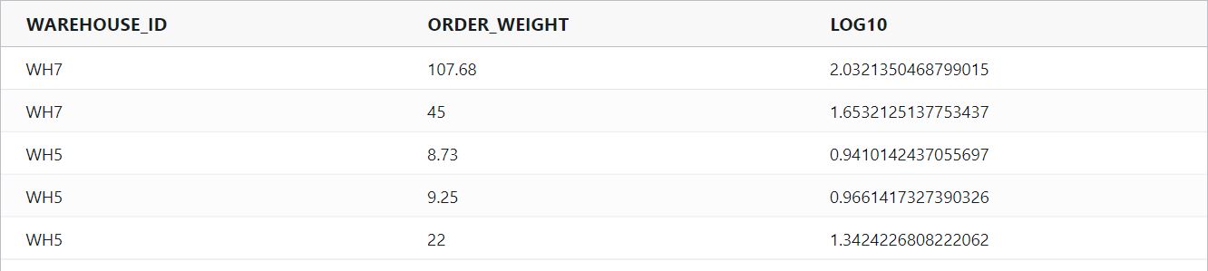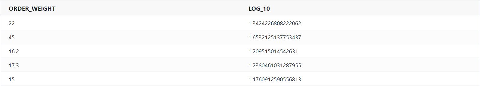 log10 : Calculates the log base 10 of a number and returns the result as a double.