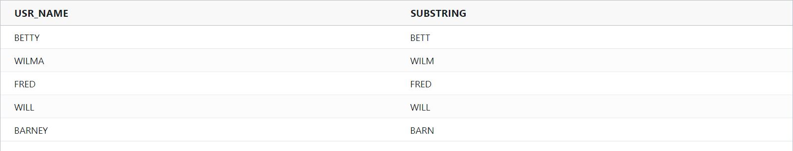 substring : Returns a substring of a string, starting at a specified index position and including the specified number of characters.