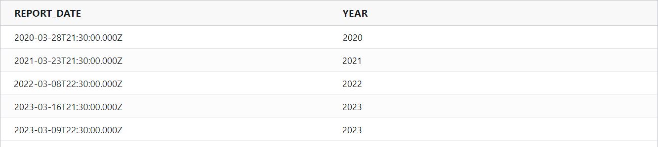 weekOfYear : Returns the week of the year for a date as a number between 0 and 53.